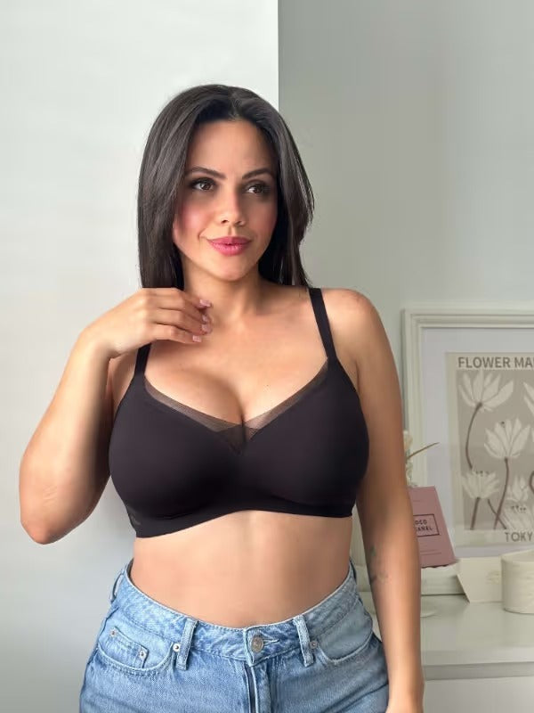 FeelBra™ s’adapte à toutes les morphologies. Sans armatures, elle offre un maintien naturel, rehausse délicatement le décolleté et sublime les formes sans jamais les écraser.