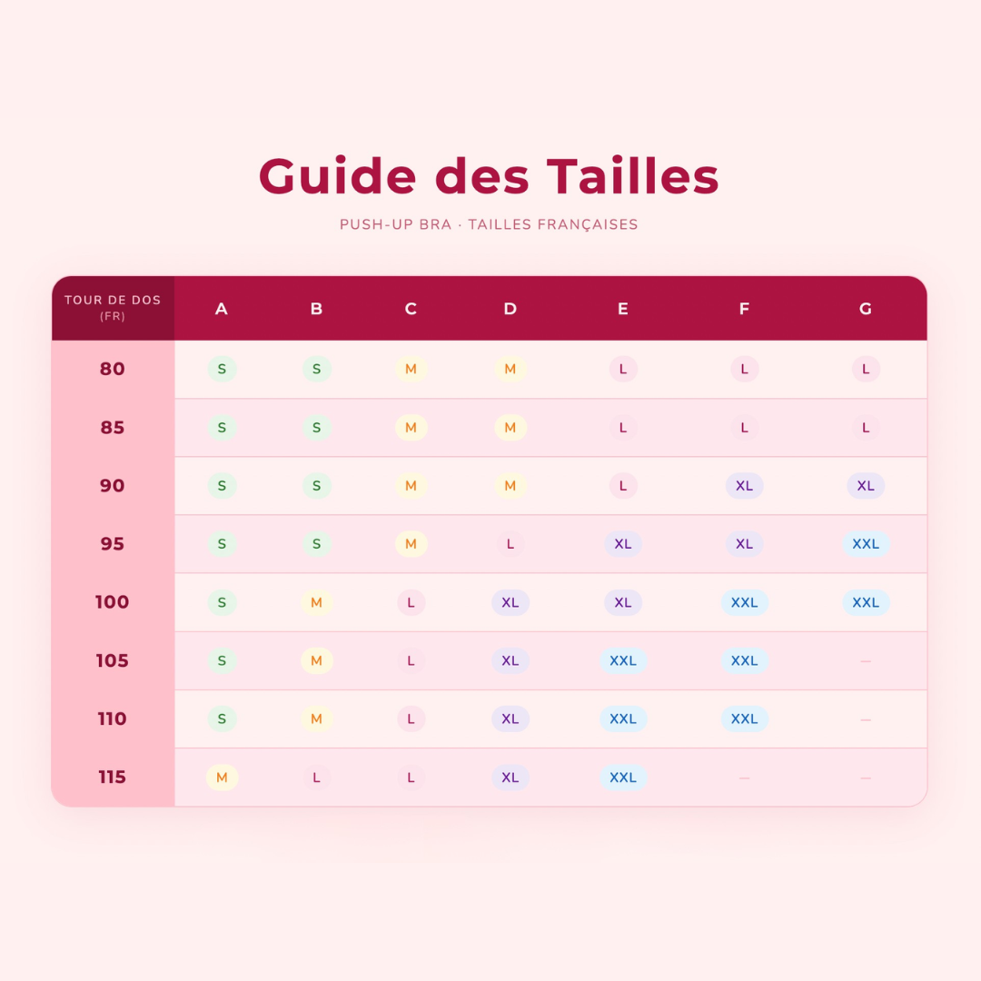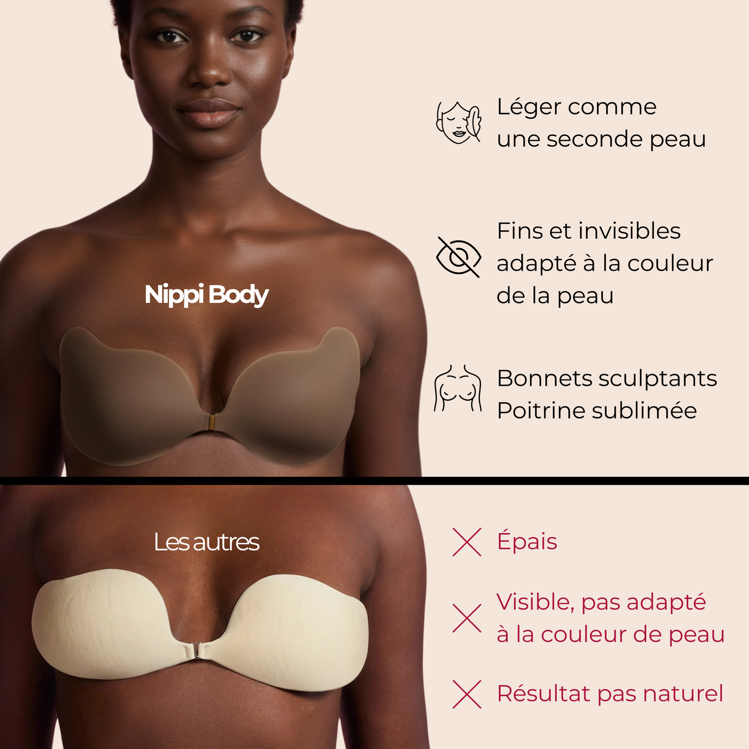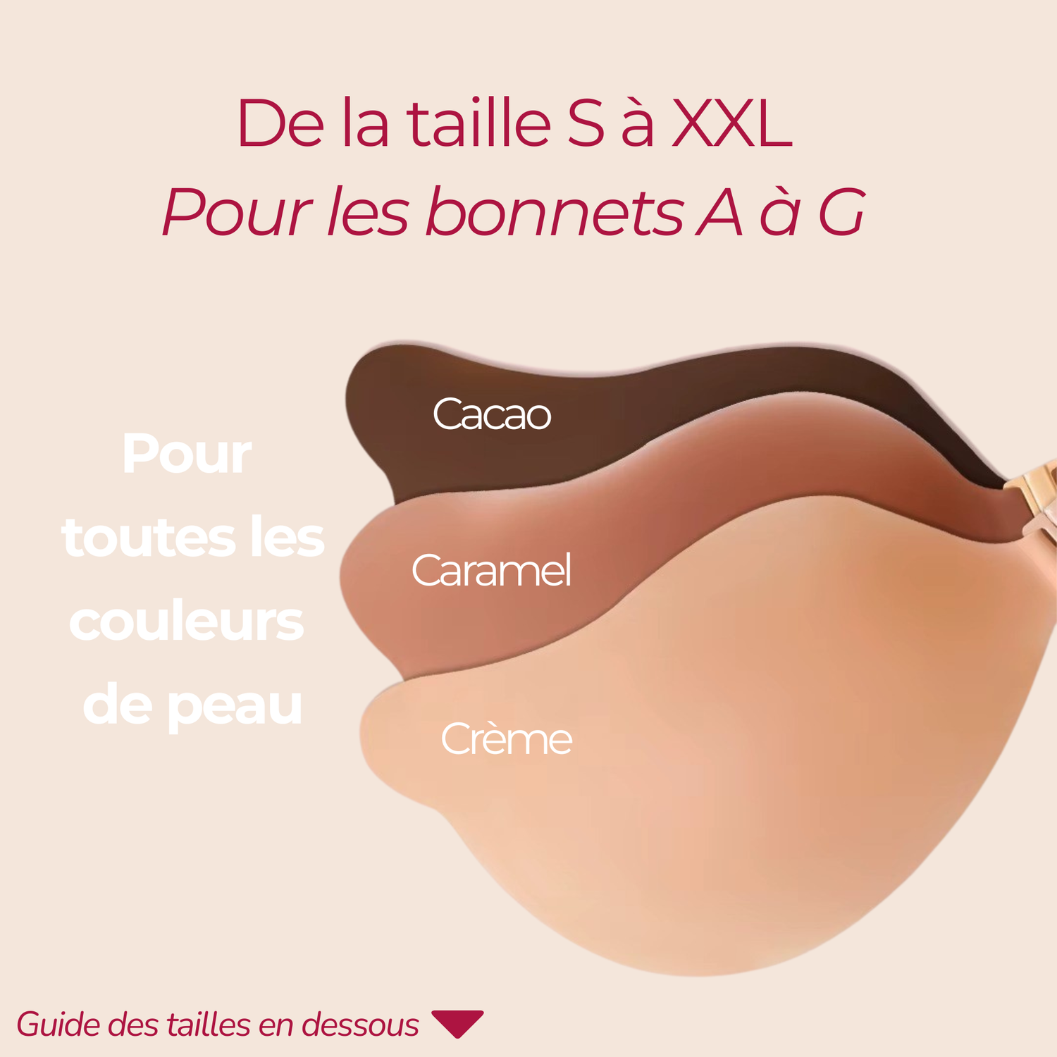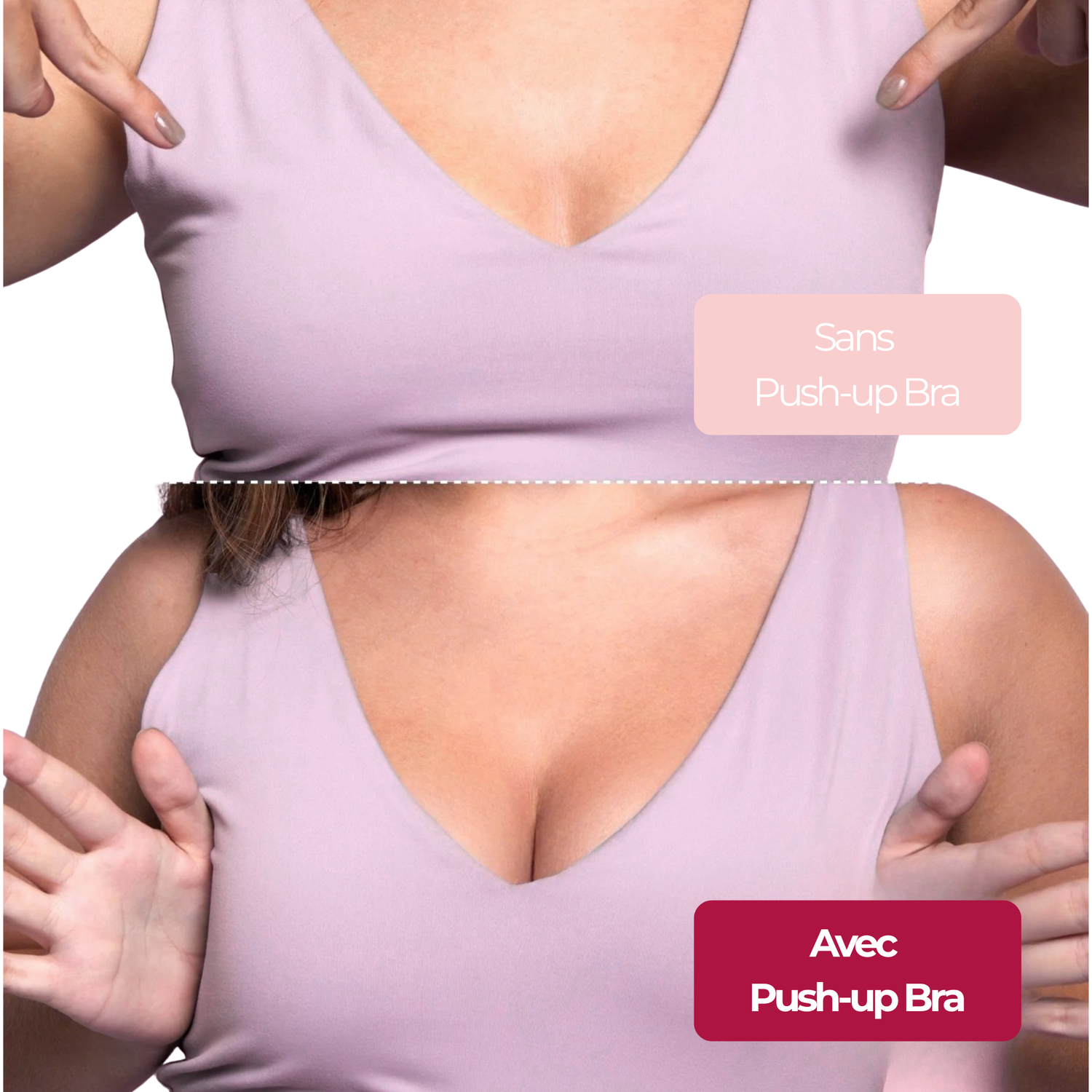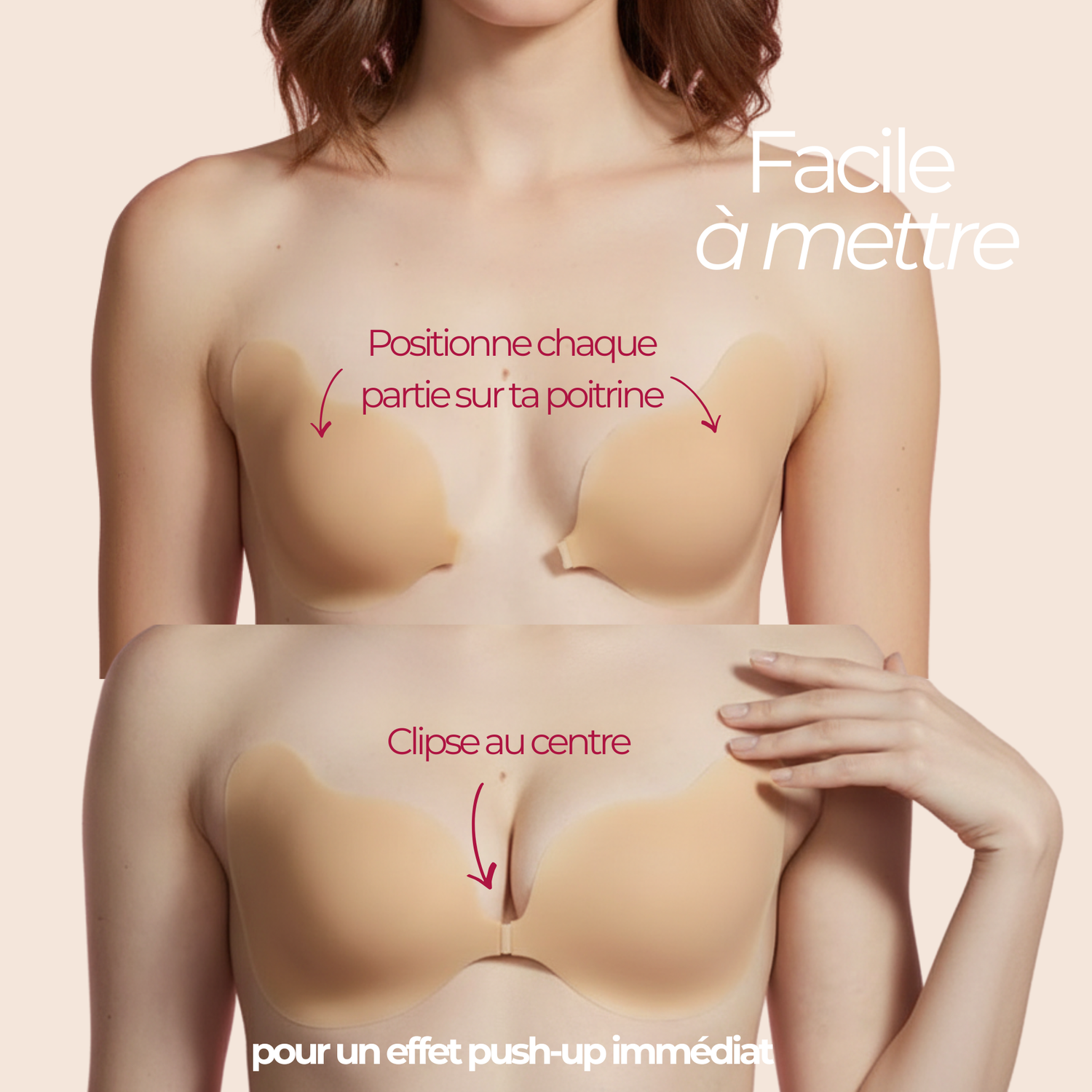 Le Push-up Bra combine trois éléments clés : ses bonnets en silicone sculptants, ses bords liftants et son agrafe centrale. En positionnant les bonnets écartés sur ta poitrine puis en les refermant avec l'agrafe, ils remontent et rapprochent tes seins pour créer un décolleté généreux et naturel. Plus tu écartes les bonnets au départ, plus l'effet push-up sera spectaculaire.