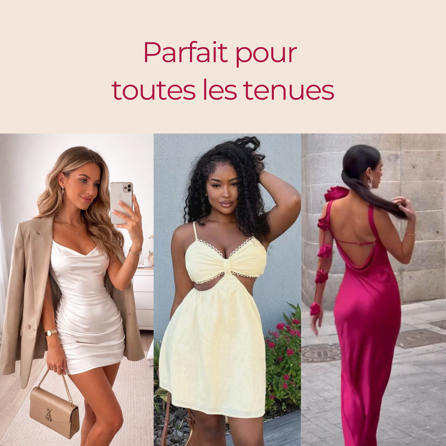 Le soutien-gorge adhésif Push-up Bra n'est pas un soutien-gorge adhésif classique : c'est une solution sculptante et invisible pour une poitrine sublimée. Conçu en silicone ultra-léger et doté de bonnets galbants, ce modèle incontournable offre un décolleté rehaussé et naturellement généreux. Discret, confortable et parfaitement adapté à ton teint, il devient ton allié pour tous tes looks décolletés.